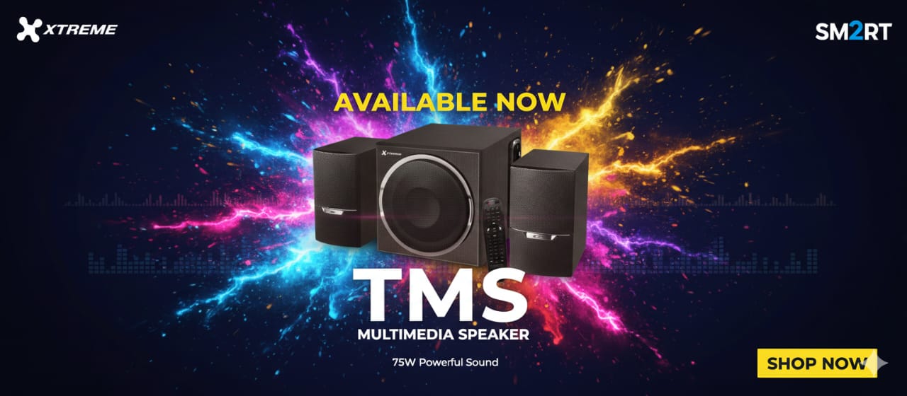 Bring your music to life with Xtreme TMS 75W Bluetooth Speaker – stylish, powerful, and wireless. Perfect for music lovers who want high-quality audio without compromise.