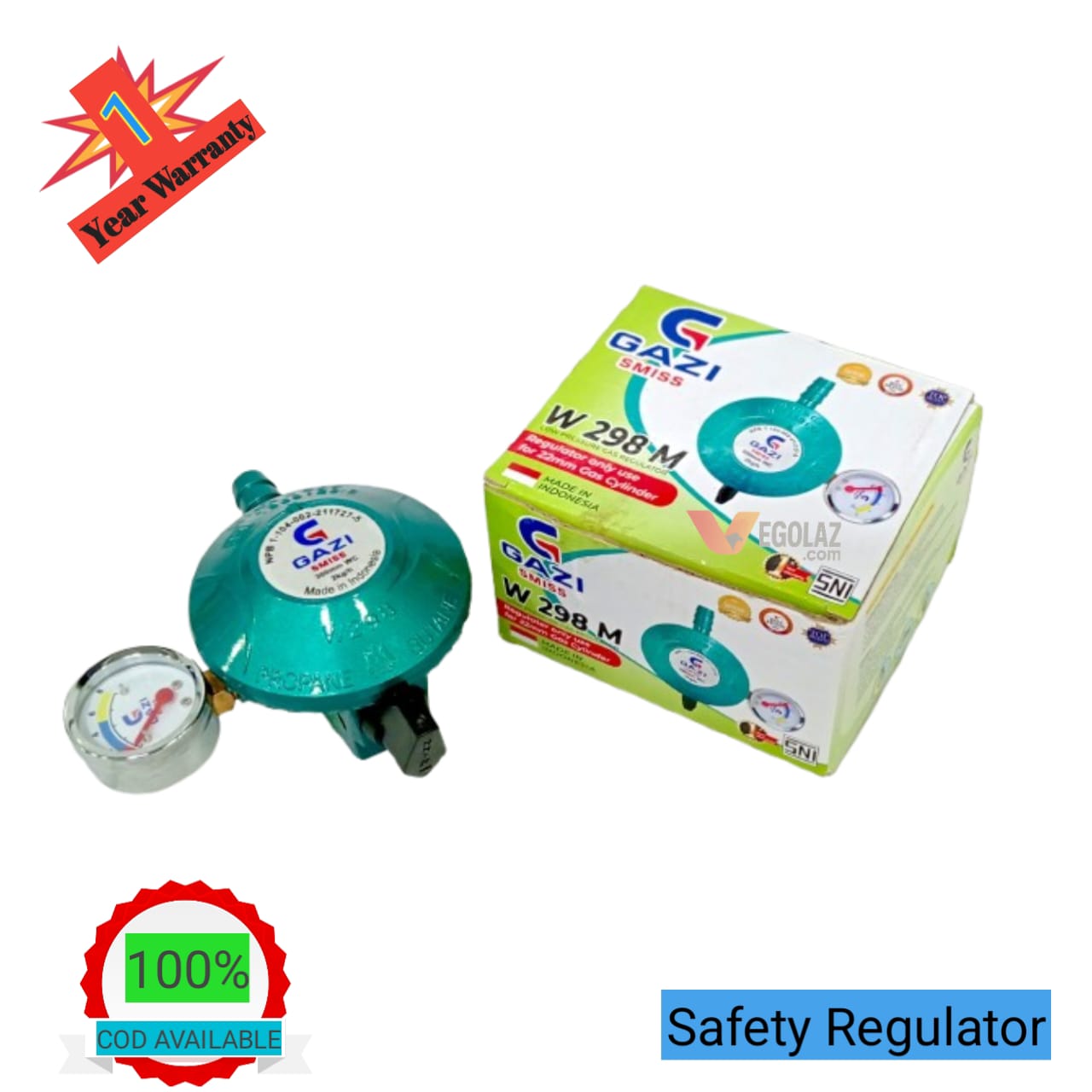 Buy Gazi Smiss LPG Gas Regulator W-298M with Meter (22mm, Low Pressure, 1 Year Warranty). Original Gazi product for safe and reliable cooking. Strong build, easy operation, and long-lasting performance in Bangladesh.