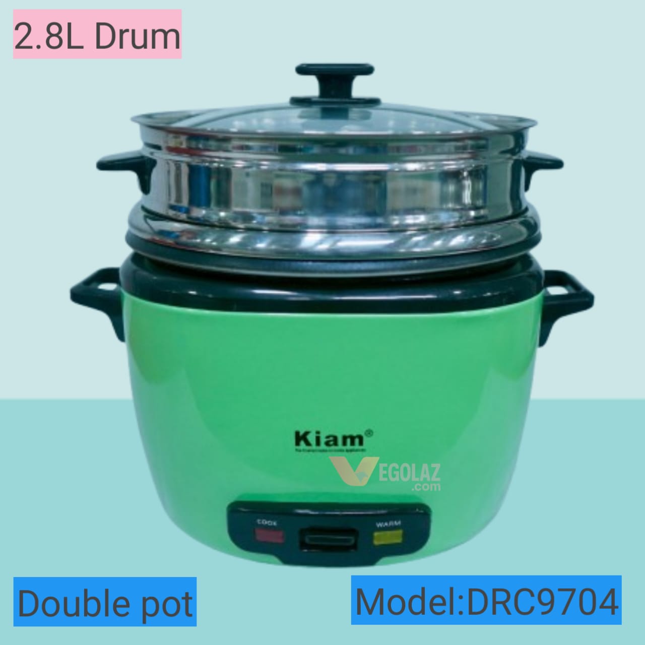 Kiam Rice Cooker 2.8L – Model:DRS-9704 SS Drum Body (Double 1SS+1NS DRUM Pot)